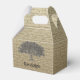 One side shows spreading oak tree with Family Name beneath. Other side shows Family Name, Event Name, Location, and Date. All text fields are available for personalisation.