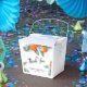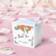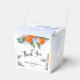 Favour Box for baby shower is decorated with an illustration of a delicious tangerine branch with flowers in a watercolor sketch style.