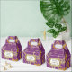 NOTE: This is a flat printed image, there are no jewels, raised layers or gold metallic elements. COLOR PALETTE: violet purple, soft creamy white with faux gold metallic glitter look DESIGN COLLECTION: Matching formal dinner reception, bridal shower or rehearsal dinner favour boxes for easy decor enhancement. Inspired by Old Hollywood and her heyday glam era, this wedding invitation set is perfect for elegant, sophisticated, modern wedding celebrations. A classic, beautiful swirling leaf damask style pattern has been graphically designed to look like a silver edged gold glittery embroidered lace design with a golden buckle that has a diamond border over faux glitter. A contemporary typography layout for your invite wording and information updates this vintage retro design. A gorgeous, unique and pretty design for the most discriminating bride.
