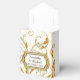 NOTE: This is a flat printed image, there are no jewels, raised layers or gold metallic elements. COLOR PALETTE: black, soft creamy white with faux gold metallic glitter look DESIGN COLLECTION: Matching formal dinner reception, bridal shower or rehearsal dinner favour boxes for easy decor enhancement. Inspired by Old Hollywood and her heyday glam era, this wedding invitation set is perfect for elegant, sophisticated, modern wedding celebrations. A classic, beautiful swirling leaf damask style pattern has been graphically designed to look like a silver edged gold glittery embroidered lace design with a golden buckle that has a diamond border over faux glitter. A contemporary typography layout for your invite wording and information updates this vintage retro design. A gorgeous, unique and pretty design for the most discriminating bride.