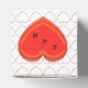 Background of box on all sides has multiple red-wire heart shapes in rows. Front of box has large 3-d Red heart. On top is the 3-d heart with Initials "L & M" (personalise each initial separately).
