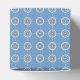 White ship's helm is replicated in multiple rows, covering the box, on a medium blue background