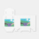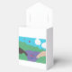 This gift box is designed with a paper art design of green mountains and a blue lake with hot air balloons above.