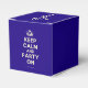 Based on the original Keep Calm and ... poster this cream and blue Keep Calm and Party On Favour Box features a custom designed font that matches the original closely. The favour boxes are ideal for weddings, parties and corporate events.