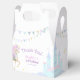 Birthday Favour Boxes with an adorable unicorn with wings, which is surrounded by cute pictures of a magical castle, clouds and festive bunting.