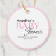 Baby shower gift tags featuring an adorable watercolor illustration of a teddy bear in a cute pink dress.