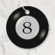 Rack 'em up! This delightfully whimsical design is a computer-generated version of the "eight ball" in billiards. Whether you are celebrating the game of billiards or a Eighth Anniversary, this delightful design is a wonderful choice for your favourite pool shark. The coordinated, solid, black back features two areas of text that can be customised for your event or special occasion. From birthday parties to sports bar celebrations, this fabulous favour tag is a terrific addition to the coordinated favour box also offered in this collection.