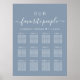 Chic downloadable dusty blue wedding seating chart poster for up to 12 tables featuring "Our Favourite People" in a mix of simple white typography and a stylish white script with swashes, and your names and wedding date joined together by a heart. The digital download option allows you to edit with last minute changes and print locally.