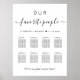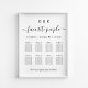 Chic wedding seating chart poster sign for up to 8 tables featuring "our favourite people" in a blend of simple lettering and a stylish script with swashes, your names and wedding date joined together by a heart and "We're so glad you're here" in classic serif typography. Select the digital download option to edit with last minute changes and print locally.