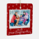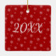 Favourite Photo on Christmas Red with Snowflakes Ceramic Ornament