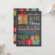 Super cute Favourite things Christmas Gift Exchange Holiday party. Features colourful gifts and a brown paper package wrapped up in string on a smudgy chalkboard background. Hand drawn illustration by McBooboos