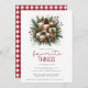 Celebrate the magic of the season with our charming Favourite Things Festive Christmas Gift Exchange Invitation! This heartwarming design invites you into a cosy holiday scene, where three thoughtfully wrapped presents sit nestled in a bed of fragrant pine and bright holly berries. Each gift is lovingly wrapped in rustic Kraft paper, adorned with delicate twine and rustic pinecones, evoking the warmth and simplicity of Christmas past. The back of the invitation showcases a bold, classic red buffalo plaid, adding a rustic touch that perfectly complements the festive charm. Personalise with ease and make your holiday gathering unforgettable!
