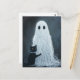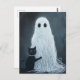 A fun Halloween scene with a ghost covered in yarn and a cat hugging him