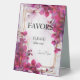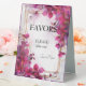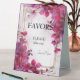 Introducing the Fuchsia Enchantment: Watercolor Wedding Suite Favours Table Tent Sign, a delightful addition to your wedding reception decor. This sign is sized at 6" x 8" and features a fuchsia background on the front with the caption "Favours" and the phrase "Please take one," creating an inviting and charming display for your guests.