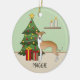 Fawn And White Italian Greyhound & Christmas Tree Ceramic Ornament