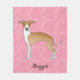 Fawn And White Italian Greyhound On Pink Hearts Fleece Blanket