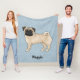 Fawn Coat Colour Pug Dog With Custom Name Blue Fleece Blanket