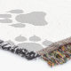 Destei's original cartoon illustration of a fawn coat colour Great Dane breed dog. The background has a pattern of grey dog paw prints.