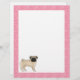 Fawn Pug Dog Cartoon Mops Love Heart Pattern Pink Custom Letterhead