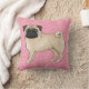 Fawn Pug Dog Cartoon Mops Pink Love Heart Pattern Cushion
