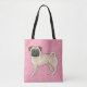 Fawn Pug Dog Cartoon Mops Pink Love Hearts Pattern Tote Bag