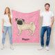 Fawn Pug Dog Cute Mops And Pink Hearts With Name Fleece Blanket