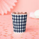 Introducing our charming navy gingham paper cups, perfect for any occasion! These high-quality cups feature a classic gingham design in a beautiful shade of navy. Measuring at 3.75"h x 3"d and with an 8 oz capacity, they're the perfect size for serving cold or warm beverages. Our cups are FDA approved for food contact and safety, so you can feel confident serving your guests with them. They're ideal for everything from lemonade to iced tea to hot cocoa and more. Our cups are printed in the USA with high-quality inks, ensuring that the design stays bright and beautiful. Whether you're hosting a picnic, baby shower, birthday party, or just a casual get-together, these cups are sure to impress. Add a touch of whimsy to your party decor with our delightful navy gingham cups!