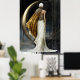 This Moon Keeper art also captures the allure of the night sky, thus blending intricate textures with a beautifully luminous crescent moon and a graceful goddess figure. Rich with fantasy elements and celestial charm, this design radiates wonderful mystery, magic, and romance. Ideal for dreamers, stargazers, and anyone drawn to the poetic beauty of moonlight and myth. clothing and dripping gold.