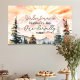 Boho and rustic Christian gender-neutral first birthday design based on psalm 139 "Fearfully and Wonderfully Made" with a watercolor-style landscape with mountains, fir trees, and a rising sun.