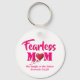 FEARLESS MOM Proverbs 31 keychain in hot pink typography. Stylish, modern inspirational message for a fearless mum or mum, based on Proverbs 31:25, which reads 'SHE LAUGHS AT THE FUTURE'. Hot pink typography with red heart image. This Proverbs 31 keychain would make an ideal gift for Mother's Day, birthday, Christmas, or would be great as favour giveaways at church, or as merchandise at women's conferences, etc. The Christian Bible verse is CUSTOMIZABLE, so you can add your name or create your own text. Choose from a wide selection of Christian inspirational keychain designs. Part of the FEARLESS Collection at Berean Designs.