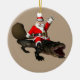 Fearless Santa Claus Riding An Alligator Ceramic Ornament