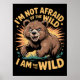 This vibrant illustration features a bold bear embodying the spirit of the wild. The bear confidently declares, "I'm not afraid of the wild. I am the wild," symbolising strength and adventure. The dynamic and colourful design captures the bear's fearless expression and connection to nature.