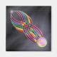 A brilliantly-coloured flowing abstract framed in gold and studded with diamonds and pearls. Sinuous glowing streams of red, yellow, green, blue, purple, and pink curve smoothly, crisscrossing from one great pearl down to the tip, accented at the end by a starburst. This rainbow design is laid against a background of black silk.