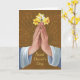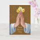 Celebrate the Feast of St. David with this heartfelt card, honouring his legacy of faith, humility and devotion. Praying hands hold a small bouquet, symbolising his gentle strength, with “St. David’s Day” inscribed beneath. Light radiates from the centre, illuminating a richly textured brown background. A beautiful way to share blessings and joy on this special day dedicated to Wales’ beloved patron saint.