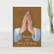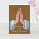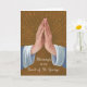 Honour the Feast of St. George with this meaningful card, offering blessings of faith and courage. The design features reverent praying hands at the centre, illuminated by radiant light. A rich brown background with a subtle texture adds warmth and depth. A wonderful way to celebrate this beloved saint, known for his steadfast devotion and strength in Christ.