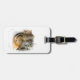 Make your luggage stand out on an airport carousel with unique tag designs! This adorable luggage tag features a cute little chipmunk stuffing his cheeks as fast as he can on a snowy day. His fur coloration is gold, brown and white with black and white stripes down his back. The back has another little chipper. Customise the reverse side with your personal information.