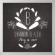 Celebrate the wedding day or anniversary of your favourite bride and groom with this customisable keepsake! An elegant white ring of feathers on a black chalkboard background surrounds a monogram; couple's names and wedding date can be customised below. Makes a beautiful, modern, personalised gift.