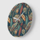 Feather Floral Paisley Abstract Ethnic Swirl Large Clock