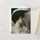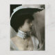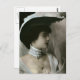 Vintage photograph of a young lady wearing a huge curved hat with feather decoration and a lace choker