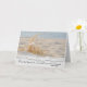 White feather in gold beach grass in sand with Scripture verse for sympathy.