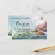 Artistic chiropractor business card featuring a feather design with a spine image. The back of this business card has space to write down appointments. The back label image is a separate file and can be deleted if you do not need it.