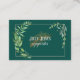 Spruce green and cool green foliage colours frame your business information. Golden plumed feather pen accents.