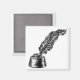 Feather quill ink writing pen in inkwell in a woodcut vintage retro or woodblock line art drawing style