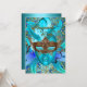 Masquerade Party. Birthday Party Invitation. Elegant teal sparkle feather mask & gold damask design.
