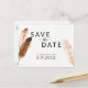 A simple save the date postcard with feather illustration image, compatible for both outdoor (garden) and indoor modern wedding or engagement party.