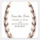 Chic and modern Feathered Border Save the Date Stickers with a stylish watercolor look brown and beige coloured feather border. These elegant and unique save the date stickers are easy to customise with your wedding details. For more customisation options, click on the Customise It button.