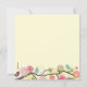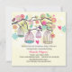 A delightful baby shower invitation for either gender or multiples. The square invitation features a flowering tree branch with lots of birds, several bird cages and hearts. The colours are pinks and blues against a cream background.