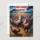 A lively group of chickens pecking and clucking in a vast field under the bright sun, showcasing their vibrant colours and charming antics.