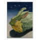 Green and blue feathered rabbit enjoying a peaceful evening with a clear sky full of stars---another whimsical fantasy created by wildlife artist Nicholas Wilson.