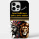 A proud warrior, adorned with vibrant feathers and intricate tribal markings, stands confidently beside a majestic lion. The fierce gaze of the lion reflects strength and courage, creating a powerful visual bond between man and beast.